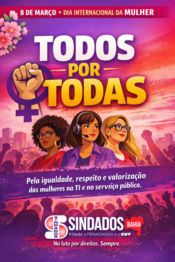 Mais do que uma data simbólica, este é um momento de reconhecer a força, a resistência e a competência das mulheres que constroem diariamente o serviço público e a área de tecnologia na Bahia. São trabalhadoras que enfrentam jornadas múltiplas, desigualdades salariais, machismo estrutural e, ainda assim, seguem produzindo, inovando e organizando a luta coletiva.