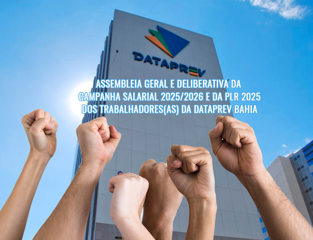 Assembleia Geral e Deliberativa da Campanha Salarial 2025/2026 e da PLR 2025 dos trabalhadores(as) da Dataprev Bahia A Diretoria Ampliada do Sindicato dos Trabalhadores em Empresas e Órgãos Públicos de Processamento de Dados, Serviços de Informática, Tecnologia da Informação e Comunicação no Estado da Bahia (SINDADOS-BA), representada pela Diretora/Coordenadora Geral, Senhora Lúcia Helena Bernardes, convoca […]
