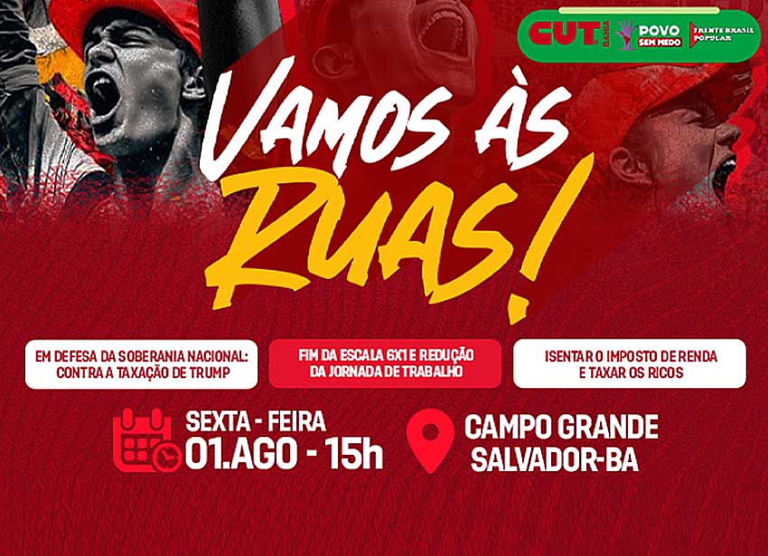 A CUT Bahia, junto com seus sindicatos filiados, associações e movimento sociais vão às ruas nesta sexta-feira (1), a partir das 15h, com concentração no Campo Grande, em Salvador, para mais uma grande mobilização do Plebiscito Popular por Direitos e Soberania Nacional. A ação integra uma agenda nacional de lutas que tem como objetivo denunciar […]